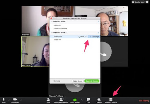 It is my favourite function of Zoom. You can create break-out rooms and manually or randomly assign a group students to these separate rooms where they can talk via their microphones and can collaborate using the chat or the whiteboard. This is great for discussion, peer-to-peer support as well as breaking up the lecturing time and making more space for engagement and active learning. You can use the break-out rooms for your participants to: