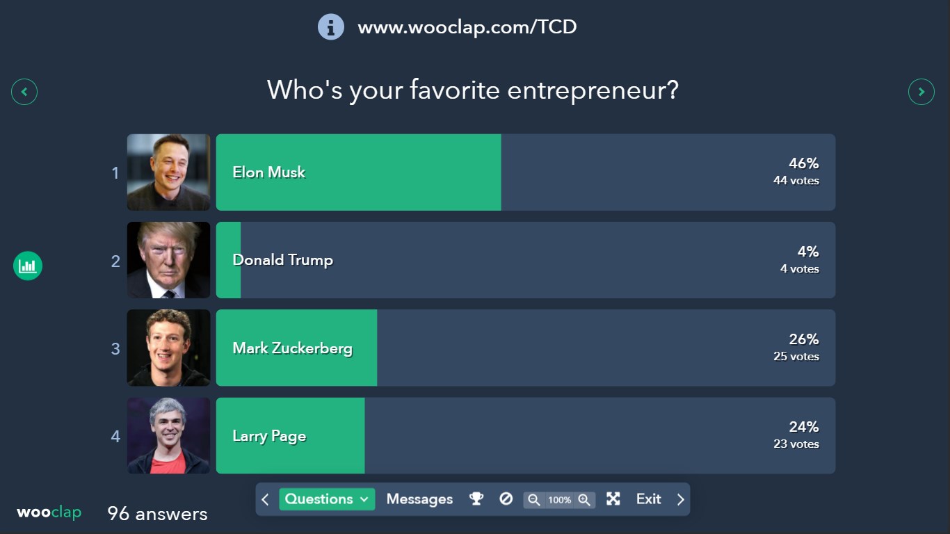 Wooclap is an interactive platform used for collecting immediate answers to your questions. You create your questions in 15 different formats like multiple choice, numerical, value, open-ended, word cloud, poll etc. Then, you launch your question by sharing your screen and invite other people to connect to the URL via their smartphones. It is also possible to connect to it via QR code. Once they answer your question, all the answers are displayed on the screen real-time. It creates great opportunities for engagement and interactivity. Wooclap can be great for: